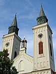 A Szent István királynak felajánlott, kéttornyosnak is nevezett nagytemplom 1860 és 1901 között épült a régi Vármegyeháza közelében levő parkban, neoromán stílusban. A templomot 1902-ben szentelték fel 10 ezer hívő jelenlétében, akiket bunyevác, magyar és német nyelven köszöntöttek. A rendházat 1905-ben adták át a karmelitáknak.