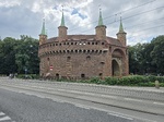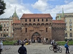 Krakkó városát már a 13. század második felében, a Lengyelországot is sújtó mongol támadást követően elkezdték megerődíteni. A 13-14. század fordulójára már elkészült a hatalmas területet lekerítő városfal első változata, amely ekkor még a külső oldalon vizesárokból, belül sáncból állt. Ezt a sáncot építették át több szakaszban kő-, illetve tégla alkalmazásával a korszakban modernnek mondható városfallá. Nagy Kázmér uralkodása alatt, a 14. század második harmadában a Wawelt, vagyis a királyi székhelynek helyet adó dombot is belefoglalták a védelmi rendszerbe. A városfalat összesen negyvenhét torony és nyolc kapu őrizte, a fal vastagsága átlagosan 2,5 méter volt. A tűzfegyverek terjedésével és hatékonyságuk nevekedésével azonban a középkori védelmi rendszer vesztett hatékonyságából, ezért a legfontosabb kapu, a Szent Flórián elé 1498-ban egy reneszánsz szellemű, de még késő gótikus építészeti elemeket használó külső védművet, barbakánt emeltek.