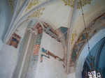 Nagyméretű, figurális, bibliai tematikájú jelenetek töredékei kerültek elő, amiket díszes szegélyek és csillagok kereteznek a boltíves mezők fehér alapján. A festményeket 2004-ben restaurálták. A 2008-ban folytatódó kutatások során további töredékekek kerültek elő, amelyek feltárásra és restaurálásra várnak.