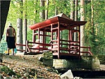 A park egyik, az 1820-as évekre eső átépítése során készült el ma is látható, látványos, egyben romantikus hangulatú vízrendszere, Josef Bergmann tervei szerint. Ennek kialakításához felhasználták a parkon keresztülcsörgedező patakot is. E patakon, nem messze a kastélytól épült fel, valamikor a 19. század végén a Japán híd, mint a látványos angolpark egyik eleme. A rendkívül kis méretű, fedett fa építmény a Távol-keleti ország hagyományos építészeti stílusára utaló kialakítású. Tetőzete pagodatetőre hasonlít. A historizáló hidat a patak árvize 1971-ben elpusztította. A ma fennálló, 3,6 m nyílású hidat - eredeti rajzok, ábrázolások és archív fotók felhasználásával - 1978-ban emelték, mint a korábbi híd rekonstrukcióját.