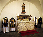 A kripta egy másik termében találjuk báró Franz von der Trenck (1711-1749) császári és királyi katonatiszt üveg fedelű koporsóját. Őbenne tisztelhetjük az épület magyar vonatkozását is, hiszen ő azonos a Jókai Mór "A két Trenk" című regényében megjelenő Trenk Ferenccel, vagy ahogy a szerző emlegeti: "a magyar Trenk" személyével. Ő volt az, aki néhány évig a közeli brünni špilberki várbörtönben raboskodott, itt is halt meg és a kapucinus rendház alatti kriptában temették el. Unokaöccse, báró Friedrich von der Trenck (1726-1794) híres kalandor volt, aki porosz szolgálatba szegődött, így Jókai regényében min "porosz" Trenk Frigyes jelenik meg.