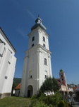 A templom mellé 1776-1779-ben Mayer János rozsnyói építőmester tervei alapján különálló harangtornyot építettek ami a város nevezetessége, a helyi ún.gömöri-klasszicizmus egyik példája. Ma három harang található benne.
