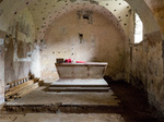 Az oltárépítmény hátsó oldalába évszámokat és neveket véstek 1950-1972 között (minden bizonnyal a gyerek ministránsok). A kőből készült szószék a 17. századra datálható. A hívek számának csökkenésével a templom használaton kívülivé vált.