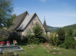 A falu déli szélén, a temető dombjának oldalában