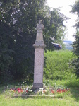 A település római katolikus ún. szakrális kisemlékeinek sorába tartozik Nepomuki Szent János néhai prágai segédpüspök kőből faragott szobra. A mintegy fél életnagyságú szobor dísztelen, hasáb alakú, vörös mészkő oszlopon áll. Ennek egyszerű, kő fejezetén áll maga az alkotás. Az 1843-ban felállított, romantikus stílusú szobor a szentet hagyományos ikonográfiájának megfelelően ábrázolja. János papi díszruhában látható, fején birétummal, kezeiben nagy méretű, korpuszos kereszttel.