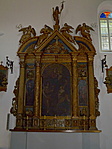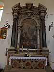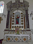 A templom oltára fából készült, melyet aranyfüsttel borítottak. A templom homlokzatán a bejárat fölött látható egy felirat mely a templom építésének dátumát jelöli, e fölött pedig díszes rózsaablak látható.