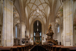 A székesegyház berendezése alapvetően barokk, de maradt fenn gótikus kifestése is. Berendezési tárgyai közül kiemelkedő egy 15. századi kereszt, valamint egy reneszánsz ereklyetartó, amelynek elefántcsont domborművein a szerelem, a halál és az idő allegórikus alakjait jelenítették meg. A Frigyes-kápolnában Conrad Laib 1457-ben készült, nemzetközileg is jelentős táblaképe látható.