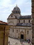 A katedrális előtt láthatjuk a nagy építőmester Juraj Dalmatinac bronzszobrát, melyet a nem kevésbé neves művész Ivan Mestrovic készített.