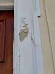 Vizesedik a fal. Belul a bejaratnal leesett a vakolat. Rozsdasodik a teto.