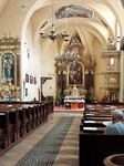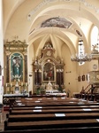 Hasonlóan egyszerű kiképzés jellemzi a belső tereket is. A bejárat egy kis fiókos dongaboltozattal fedett előtéren keresztül kapcsolódik össze a hajóval. Ezen kis előtér fölött található a hevederíves, két tartóoszlopra támaszkodó karzat.