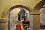 Az épület gazdag középkori építészeti részletekben. Szépek a szenttély vakárkásos párkányai, de megmaradt a beltérben a különféle színű kövekből emelt diadalív, egy nyugati kőkarzat és állnak masszív bordás keresztboltozatai is.