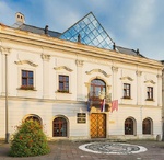 Az egykori Fő tér (német nevén: Ring) déli térfalát alkotó házsorának jelentős középülete az egykori Városháza, amely e funkcióját közel 250 éven keresztül töltötte be. Az utcafronton, zárt sorú beépítésben álló, egy emeletes, nyereg tetős Városháza magja két, a 15. század második felében felépült, gótikus "ringbürger" polgárház egybeépítésével jött létre. Első, név szerint ismert tulajdonosa Veit Mühlstein, gazdag bányatulajdonos, zólyomi ispán és körmöci kamaragróf volt. E polgárházat a 16. század második felében építették át új, városháza funkciójának megfelelően, reneszánsz stílusban. Ugyanakkor az épületet a városi tanács másodlagos központjának tekintette és 1545-től rendszeresen bérbe adta. Első bérlője Peter Goldschmidt ötvös, majd 1547-ben Lőrinc ötvös volt. Miután Bocskay seregei 1605-ben felgyújtották a várost, ideiglenesen e házba költözött a város iskolája. Hosszabb ideig gyógyszertár is működött a remek elhelyezkedésű épületben. 1669-ben említik a Hocher-Schlecht gyógyszertárat. 1698 után a gyógyszertár Andreas Herman tulajdonában volt. Az ő lányát, Susana Hermant vette feleségül 1710-ben a híres tudós, Bél Mátyás.