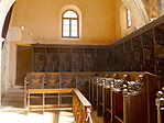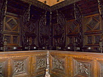 A sekrestyében XIV. századi gótikus faragványú kórusszékek.
