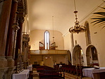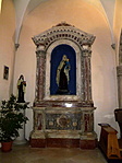 A templom legrégebbi része a bal oldalon lévő kápolna, régi freskótöredékkel, ezüst domborművel,