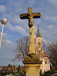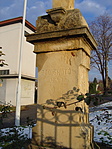 A homokkőből készült kereszt hiányos, és nagyon rossz állapotban van.