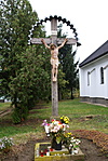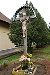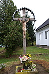 Az Újtelepi templom mellet álló, valószínűleg annál sokkal régebbi állítású kereszt. Gondozott, virágokkal szépen ellátott.