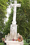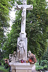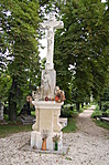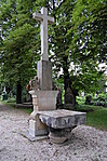A Kálvária-szobor a 2004-es restaurálás folytán nyerte el mai alakját. Késő barokk sírkő, amely alighanem (Zitterbarth József) keszthelyi mester munkája. Eredeti feszülete ismeretlen helyen, ma a Hudetz műhely 19. század végén faragott, kvalitásos munkája helyettesíti.