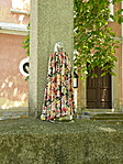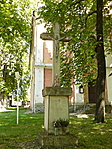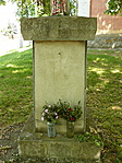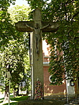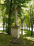 A beton talapzaton nincs felirat, vagy eltűnt, de lehet, hogy az '50-es évekből való a kereszt a felhasznált anyagok alapján. Egy 40-50 cm magasságú Mária-szobor is van a kereszt tövében, érdekesen felöltöztetve...