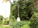 A kereszt felirata nem biztos, hogy pontos, mert nem tudtam közelebb jutni hozzá. Egy katolikus templom kertjében található.