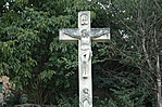 A kereszt körül alacsony fekete kerítés van.