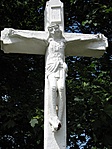 Messziről jó állapotúnak tűnik a kereszt, de közelről látszik, hogy a korpusz fél feje és lába hiányzik. A felirat már nehezen olvasható.