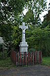 A temető bejárata előtt egy kis fakerítés mögött látható. Nagyon jó az állapota.