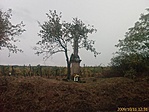 Kerékpárral Szarvaskőről Ceglédre Egerszalókon jöttünk át. A települést ezen az úton hagytuk el és felkapaszkodva a meredek parton leltem rá erre az erősen pusztulófélben lévő keresztre. Sajnos a felirat már nem olvasható.