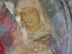 A keresztnek az elején és hátulján is van felirat. Egy üveg mögötti ovális mélyedésben Mária látható.Jó állapotban van a kereszt.