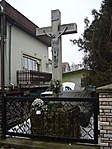 A kereszt a XVI. kerületi Újszász utca 51. számú ház udvarában van. Magas téglából épült talapzaton áll.