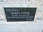 FELÚJÍTTATTA RADICS ISTVÁN, GÁLOSFA SZÜLÖTTE ÉS ELSŐ POLGÁRMESTERE EMLÉKÉRE CSALÁDJA.