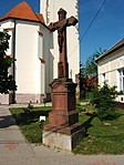 Szép vörös kereszt, a rozsdás fémszobrok illenek a színéhez.