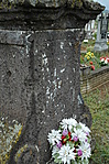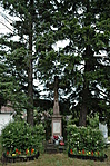 Kiváló állapotban lévő, nagyon szépen gondozott, virágokkal körülvett kereszt fenyőfák tövében, közel a falu központjához.