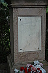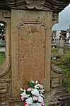 A feliratot a felkötözött művirágok alatt találtuk meg. Ha valaki arra jár amikor nincs tele virággal, kérem ellenőrizze. A kereszt tetején egy KL bevésés is található.
