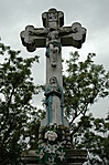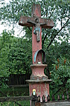 Fakereszt, rajta fém Krisztus alakkal, meglehetősen rossz állapotban. A tetejéből hiányzik egy darab. A szomszédban lakó néni csak annyit tudott, hogy 30 éve már biztosan ott áll (mondjuk ez látszik is rajta).