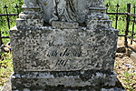 A kereszt és a rajta lévő alakok eléggé pusztuló állapotban vannak. Felirati mező is teljesen tönkre van menve.