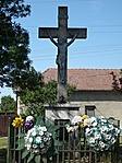 A FELFESZÍTETT JÉZUS KRISZTUS A VILÁG MEGVÁLTÓJA DICSŐSÉGÉRE ÉS TISZTELETÉRE EZEN KERESZTET EMELTETTÉK LAJOS JÓZSEF ÉS NEJE FARKAS ERZSÉBET 1909 MÁJUS HÓ 3-ÁN