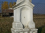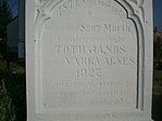 "Isten dicsőségére, a boldogságos Szüz Mária tiszteletére emeltette Tóth János és neje Varga Ágnes 1927. Jézus Krisztus, aki keresztfa oltárán meghaltál érettünk irgalmazz minekünk!"