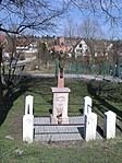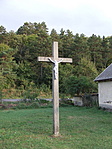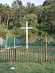 A kereszt furcsa módon egy lakóház mögötti kertben (magánterületen) áll... Egyszerű betonkereszt, alumínium (ennek látszó) korpusszal....