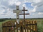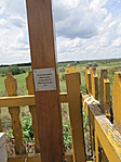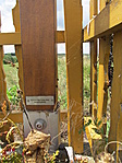A Szlovák oldalon a határvonaltól pár méterre. Beton talapzaton, díszes kovácsoltvas kereszt,ovális táblával, alul térdelő Mária alak. Fekete márvány táblán a felirat. Vas kerítéssel körbevéve.