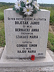 Isten dicsőségére állíttatta Dojcsák János és neje Bernácki Anna édesanyja Szakács Mária Újította Gombos Simon és neje Hajdu Mária 1942