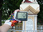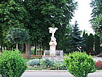 A kereszt egy kis pihenő-parkban van, rendezett környezetben