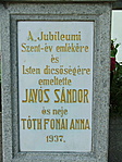 A "Jubileumi Szent-év emlékére és Isten dicsőségére emeltette JAVÓS SÁNDOR és neje TÓTH FONAI ANNA 1937