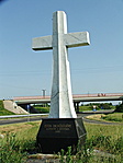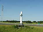 A kereszt egy lehajtó-felhajtó között van, parkolni is lehet!