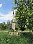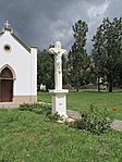 Beton alapzaton műkő kereszt öntvény aranyozott, de mára megkopott Krisztus . Kovácsoltvas kerítéssel körbevéve, a kerítés kissé megrongálódott, nem látszik, hogy gondoznák.