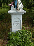 A beton talapzaton nincs felirat, vagy eltűnt, de lehet, hogy az '50-es évekből való a kereszt a felhasznált anyagok alapján. Egy 40-50 cm magasságú Mária-szobor is van a kereszt tövében, érdekesen felöltöztetve...