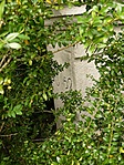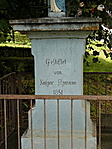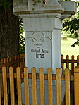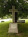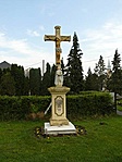 A környezetbe illő, szépen gondozott kereszt. A gót betűk miatt a feliratot nem biztos hogy jól betűztem, ahol egyáltalán tudtam.