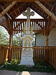 A kereszt köré ültetett tuják már túlságosan magasra nőttek.