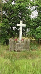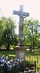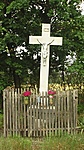 Fából készült kereszt. Gondozott a környezete.