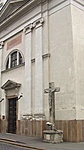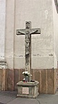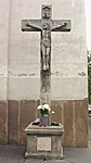 Cegléd központjában álló katolikus templom főbejáratának a jobb oldalán áll ez a kereszt.