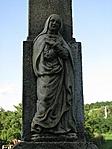 A keresztnek már csak a talapzata áll, rajta a faragott Szűzanyával és az állítás évével.